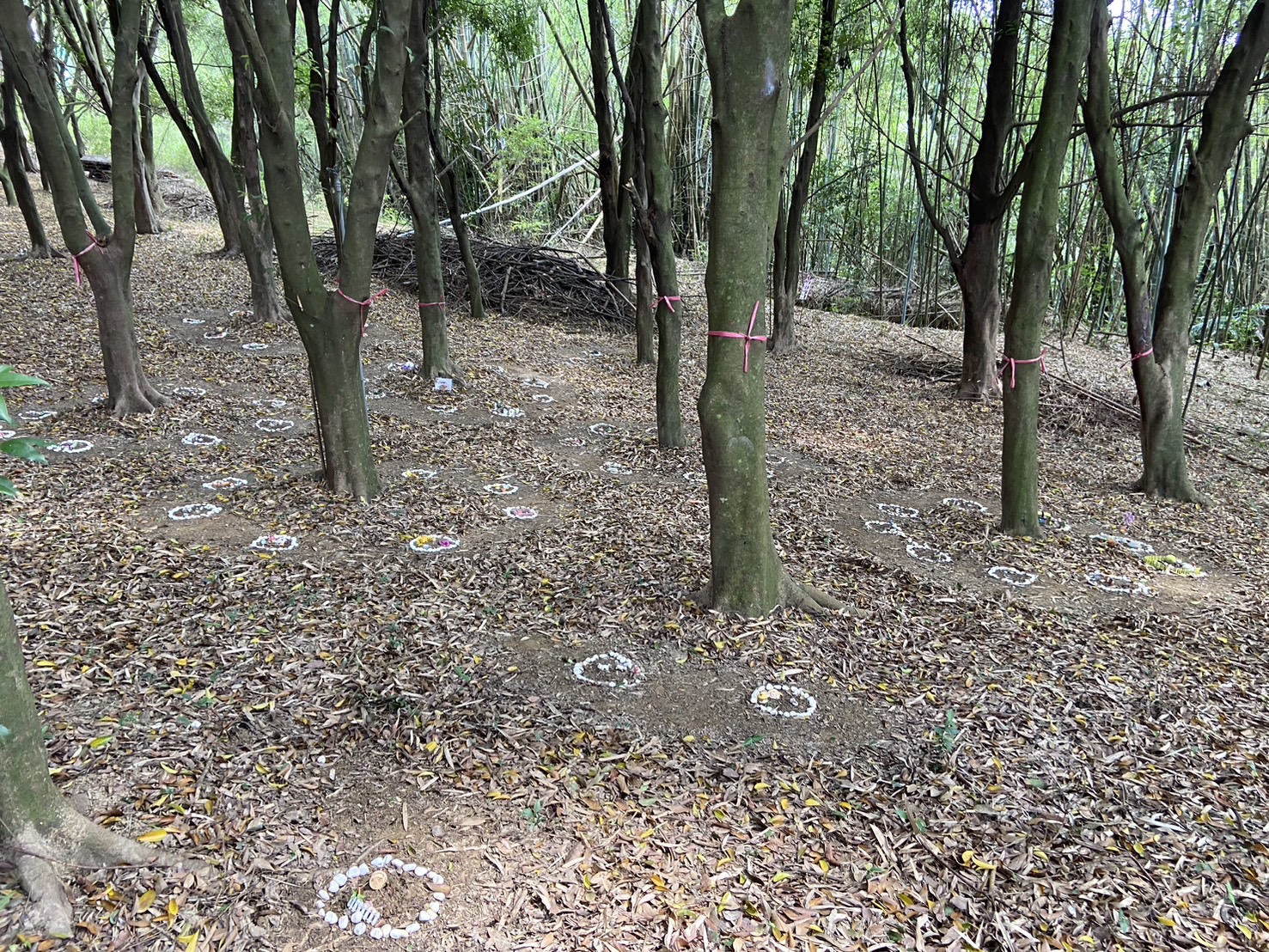 因隱私的關係,所以沒有特寫每位寶貝的小天地,歡迎前來園區的家屬們能親自現場看看,一棵樹有八個方位,有的多寵家庭也會包一整棵樹,讓愛寵也能以另一個方式相聚再一起,每一位入住的寶貝,裝飾的風格都充滿了她的家庭風格,家人可以準備與他的共同回憶,像是寶貝以前愛玩的玩具等等,上面的擺飾物沒有做任何限制, 雖然我們園區人員也會定期巡視樹林,但還是建議不要選擇太輕的物品,容易被風吹走喔~
